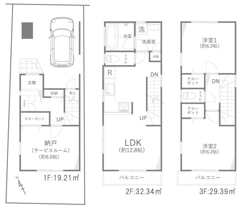 | 間取 | 2SLDK (洋室6.2帖、洋室6.2帖、S6帖、LDK12.8帖) | ||
