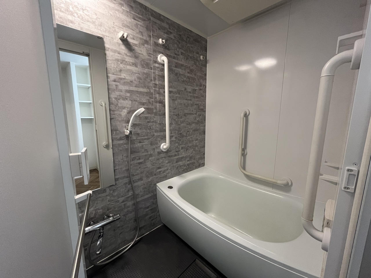 落ち着いた色味の浴室で1日の疲れをゆっくりと癒してください。