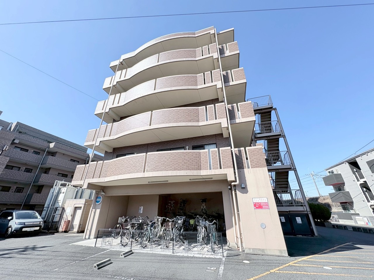 整然と並ぶ自転車が、日々の暮らしの活気を感じさせる空間。