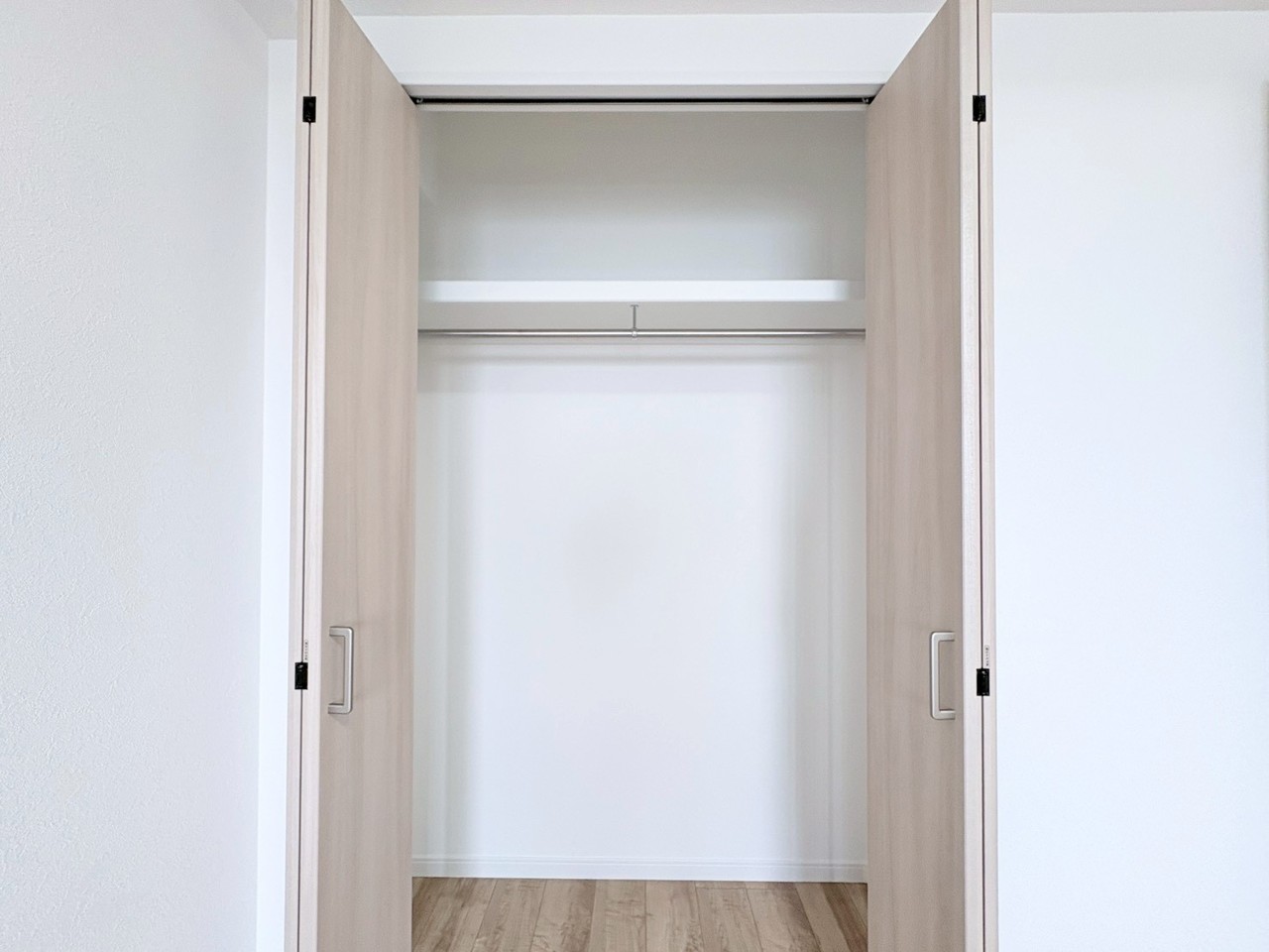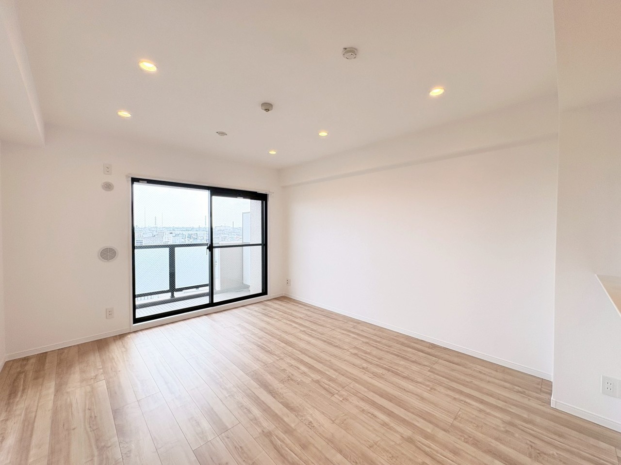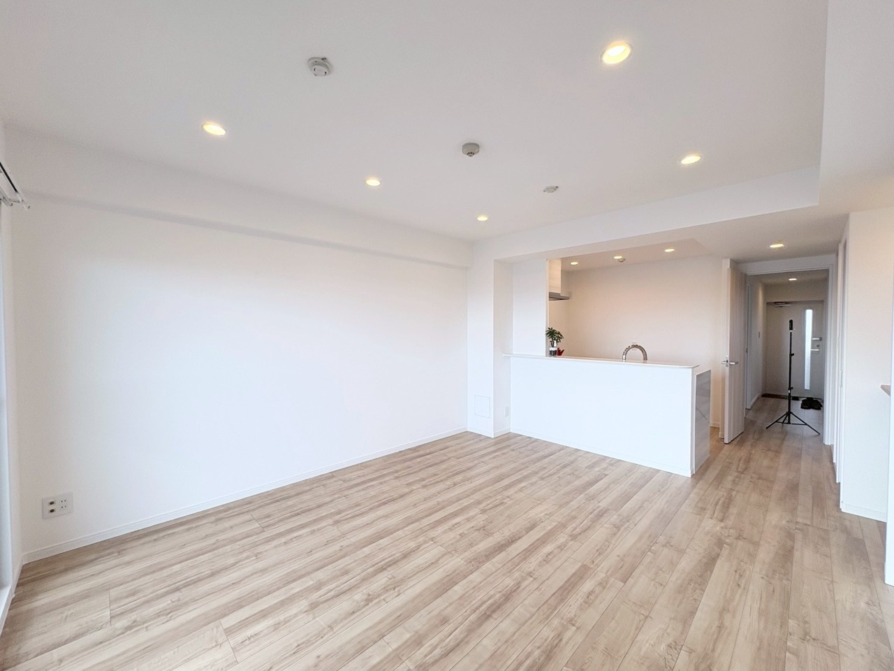 広々とした空間に、爽やかな木目調の床が心地よい調和を生み出しています。