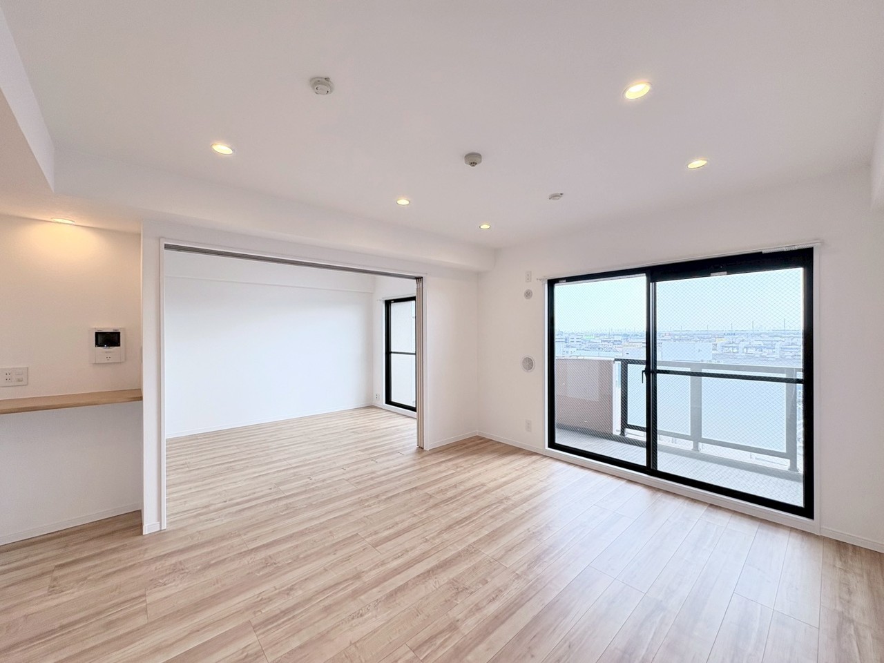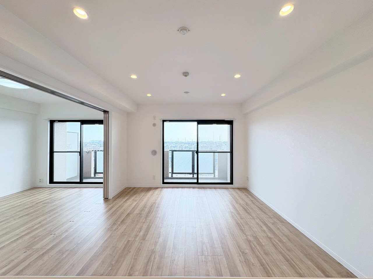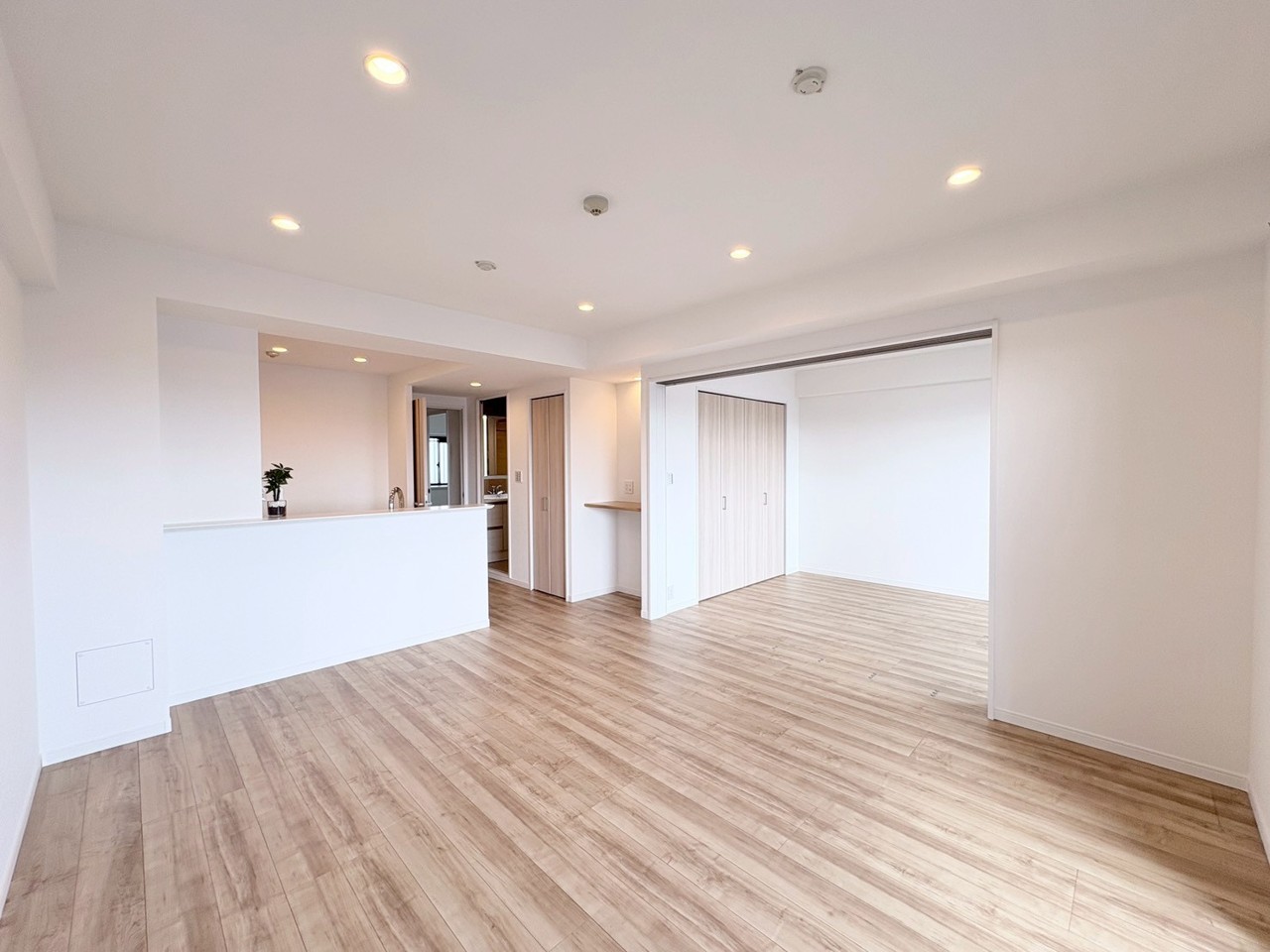 広々とした空間に、爽やかな木目調の床が心地よい調和を生み出しています。