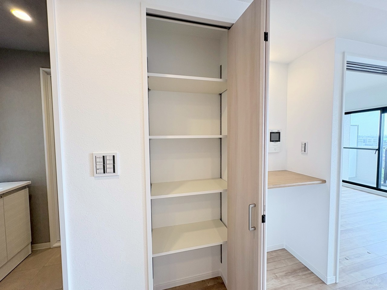 清潔感のある空間に、ゆったりとした収納スペースが広がります。
