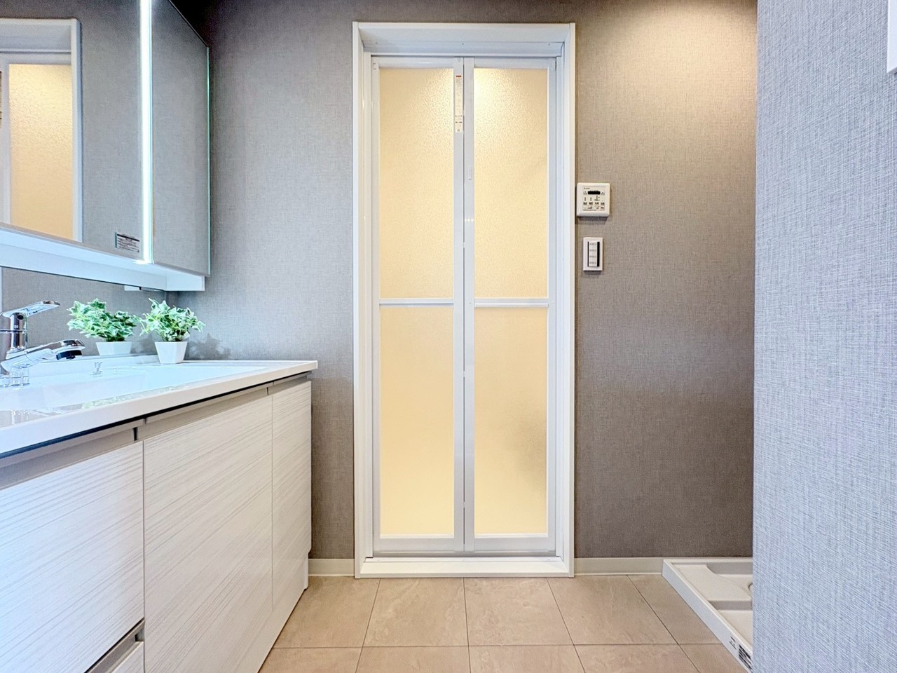 洗練された壁紙が、空間に心地よい落ち着きをもたらします。
