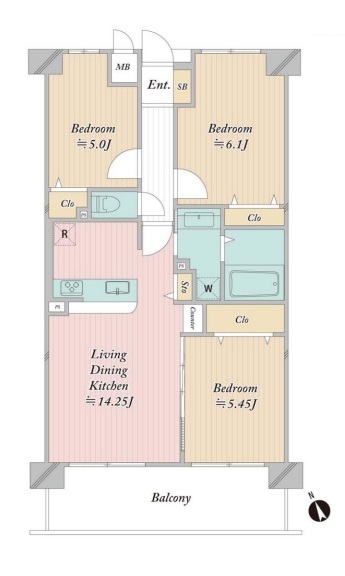 | 間取 | 3LDK (LDK14.25帖、洋室6.1帖、洋室5.45帖、洋室5帖) | ||
