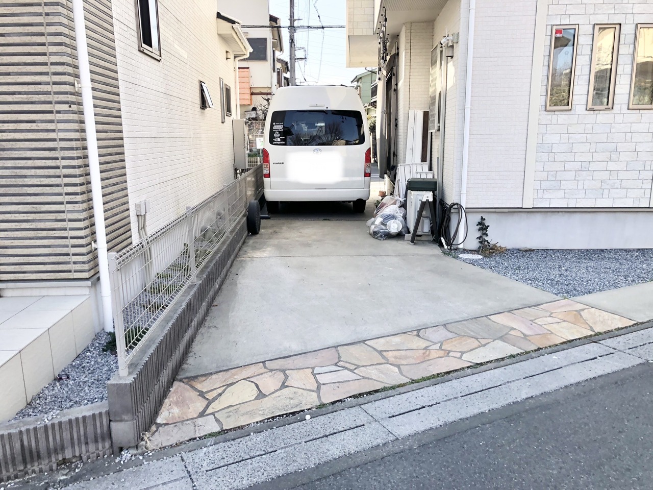 駐車場は2台まで駐車可能。マイカーの車幅もお確かめください。