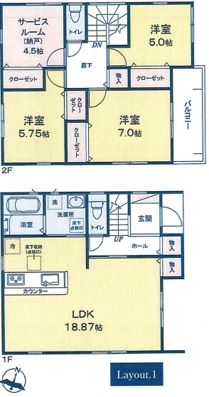 | 間取 | 3SLDK (LDK18.8帖、洋室7.0帖、洋室5.75帖、洋室5.0帖) | ||