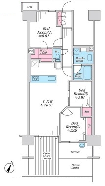 | 間取 | 3LDK (LDK16.2帖、洋室6.6帖、洋室5.0帖、洋室3.9帖) | ||