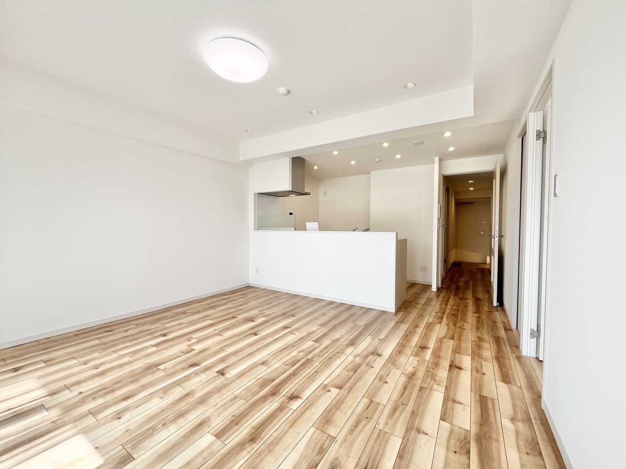 木目調の床が温かみと広がりを感じさせる、穏やかな空間。
