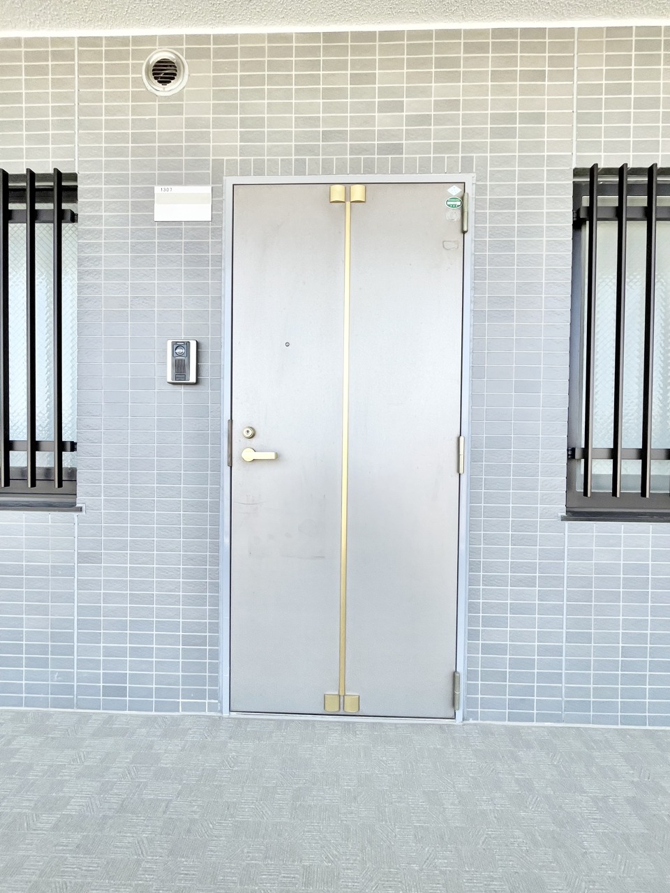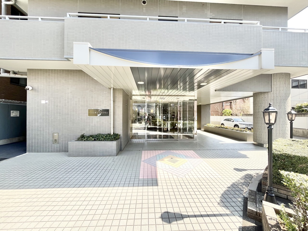 洗練されたタイルが、静かな佇まいを演出するエントランス。