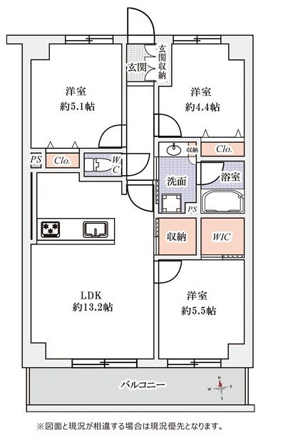 | 間取 | 3LDK (LDK13.2帖、洋室5.5帖、洋室5.1帖、洋室4.4帖) | ||
