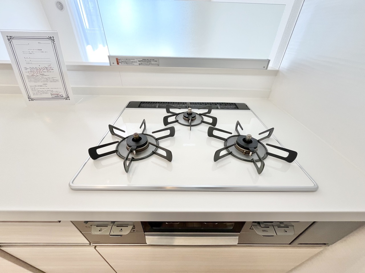 清潔感あふれるフラットなデザインのキッチン空間