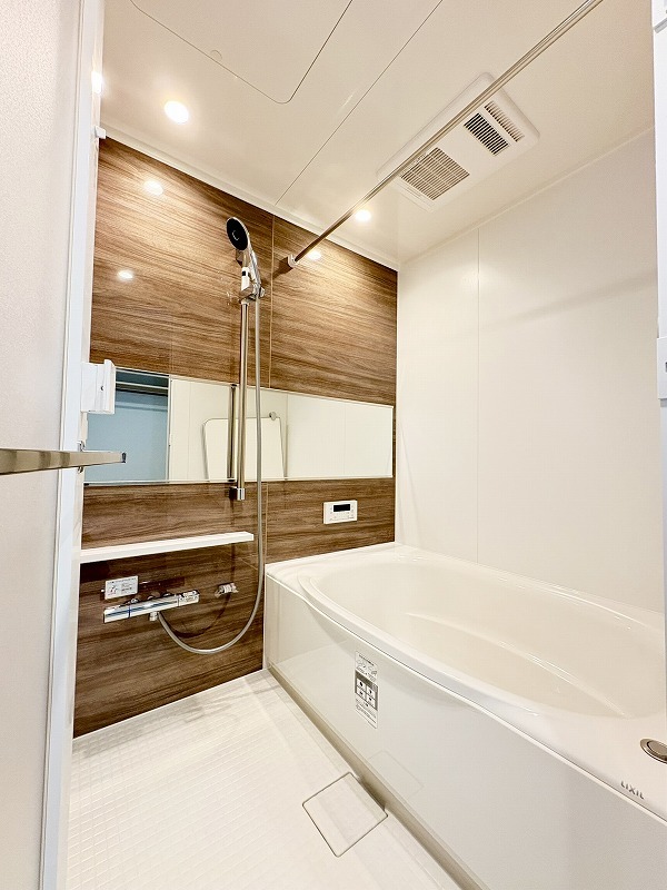 落ち着いた色味の浴室で1日の疲れをゆっくりと癒してください。