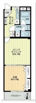 | 間取 | 1LDK (LD8.4帖、K3.5帖、洋室6.0帖) | ||