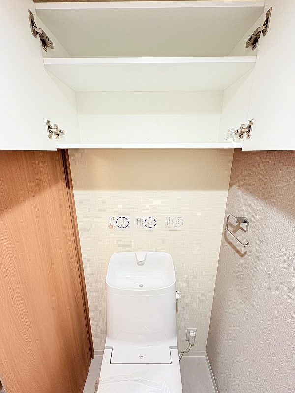 上部には収納スペースがあり、掃除用品やペーパーストックを収納できます