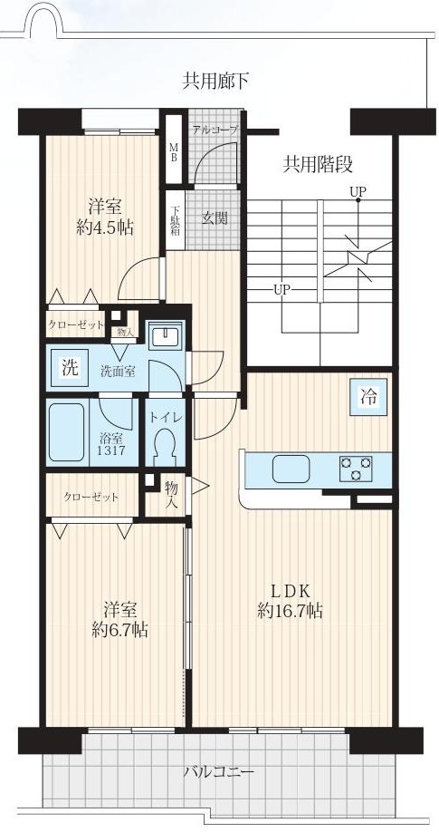 | バルコニー面積 | 10.17m² 南西向き (アルコープ面積2.52平米あり) | ||