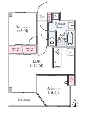 | 間取 | 2LDK (LDK12.6帖、洋室5.2帖、洋室5帖) | ||