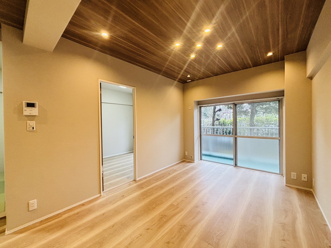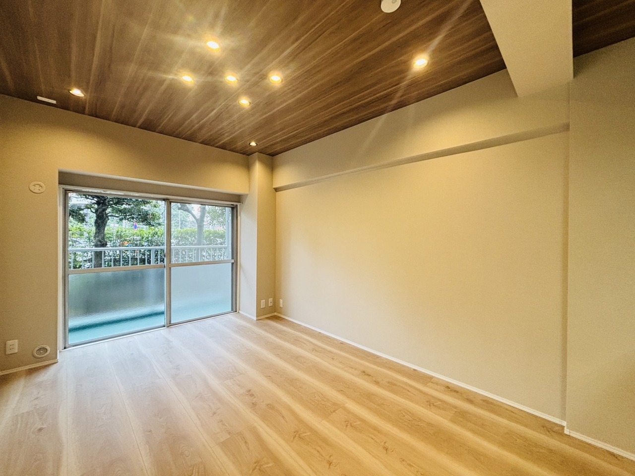 大きな開口部から明るい光が差し込む、日中の室内の明るさがこの部屋の魅力です。