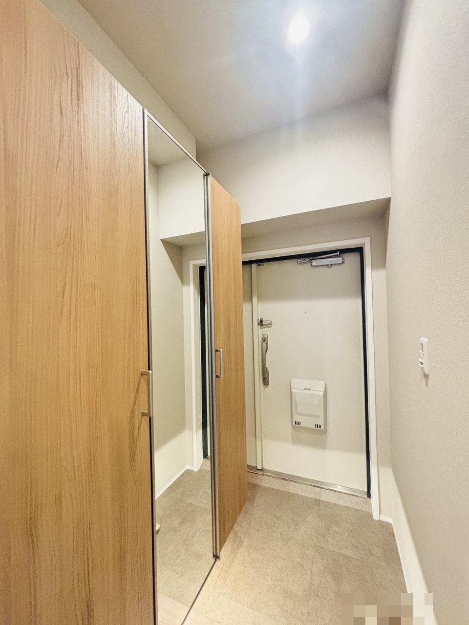 お宅の顔となる明るく開放的な玄関。ご家族皆様様の靴を収納できるスペースと全身鏡があり、お出掛け前に身だしなみチェックもできます。