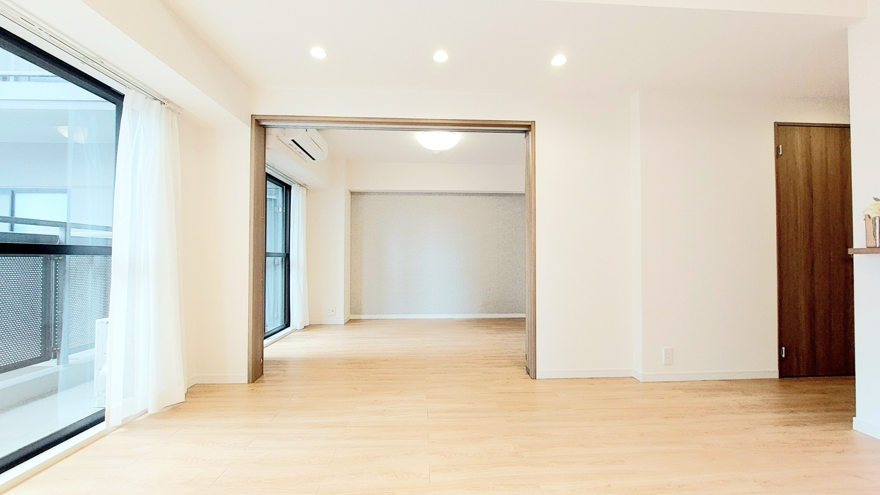 扉を開放するとLDKと洋室を一体利用できる空間!扉を閉めると独立した空間としても活用できます。