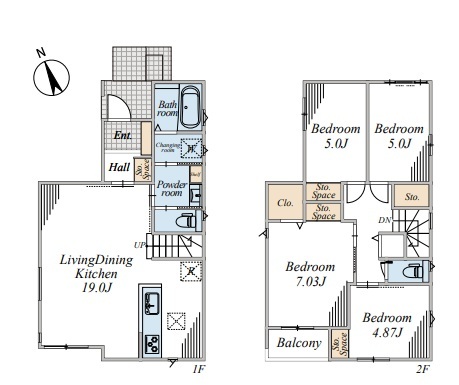 | 間取 | 4LDK (LDK19帖、洋室7.03帖、洋室5帖、洋室5帖、洋室4.87帖) | ||