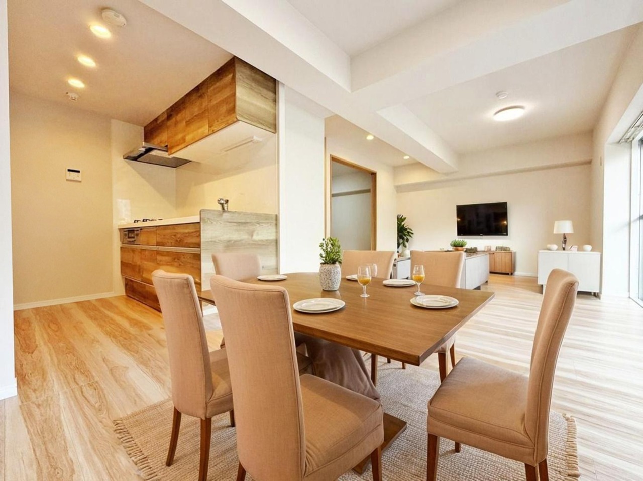 どんな家具にでも相性が良い清潔感ある白色調のクロスを採用。主張しすぎない配色、耐久性にも優れた床材は日々のメンテナンスも楽に、快適に過ごして頂けるよう考えられています。