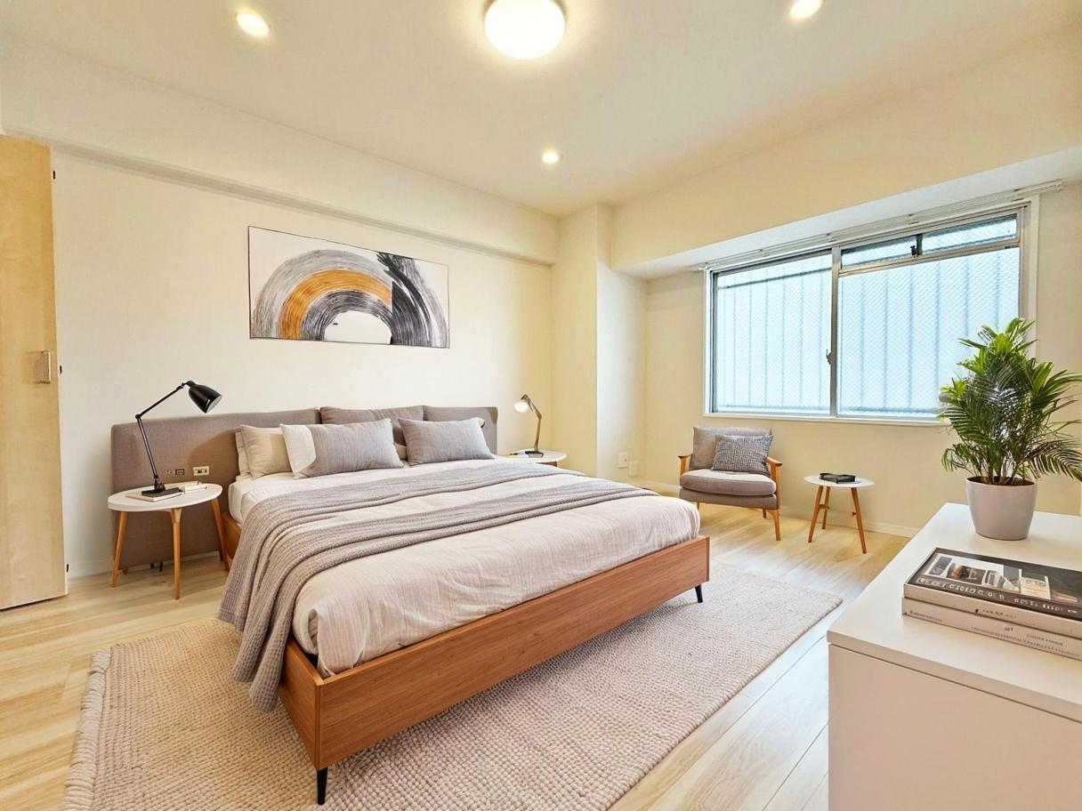 ゆとりのある寝室、陽光が入りやすく朝の目覚めも気持ち良く起こしてくれます。