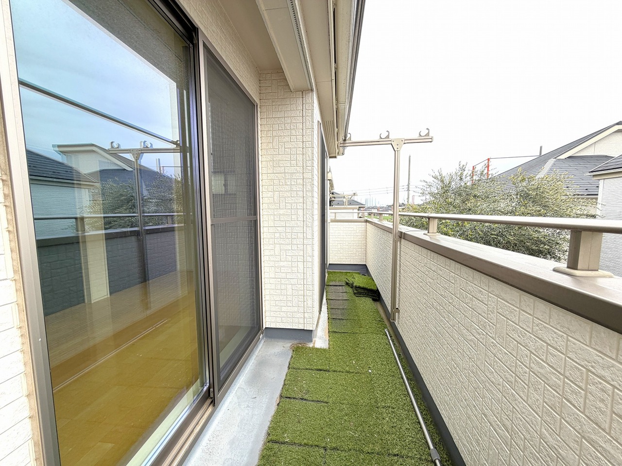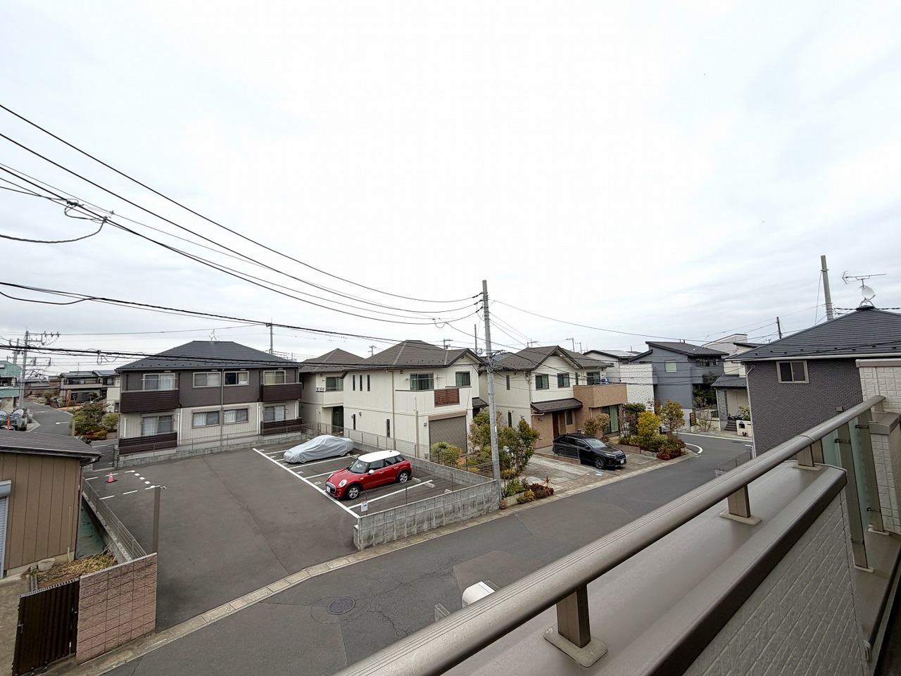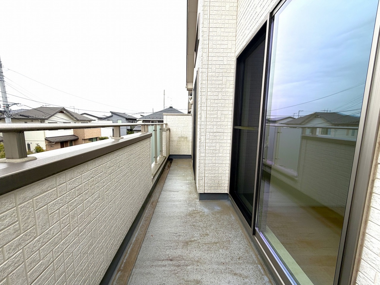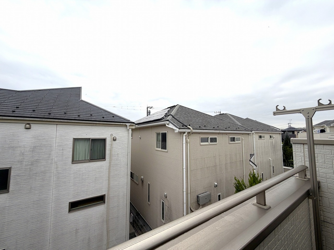 低層住居専用地域ならではのベランダの光景。辺りには高い建物がありません。