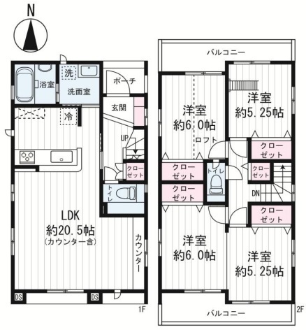 | 間取 | 4LDK (LDK20.5帖、洋室6.0帖、洋室6.0帖、洋室5.25帖、洋室5.25帖) | ||
