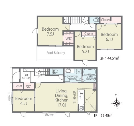 | 間取 | 4LDK (LDK17帖、洋室7.5帖、洋室6.1帖、洋室5.2帖、洋室4.5帖) | ||