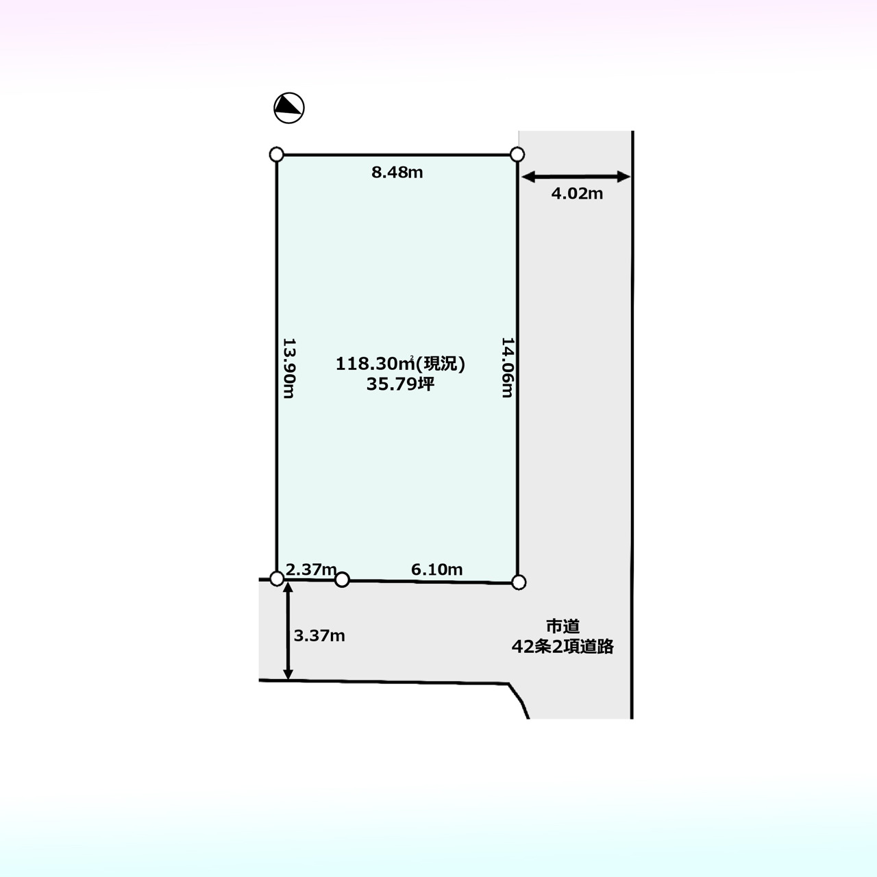| 接道 | 北側4M公道に接道 東側3.3M公道に接道 |