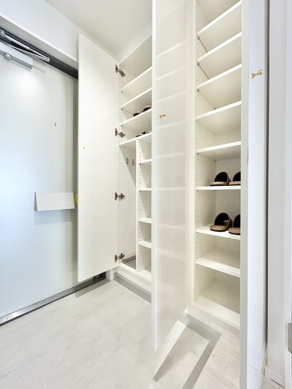 家族の履物が全部しまえる、ワイドな玄関収納。