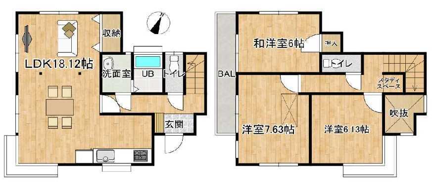 | 間取 | 3LDK + 1FLDK18×1・2F洋6×1・2F洋7×1・2F洋6×1 | ||