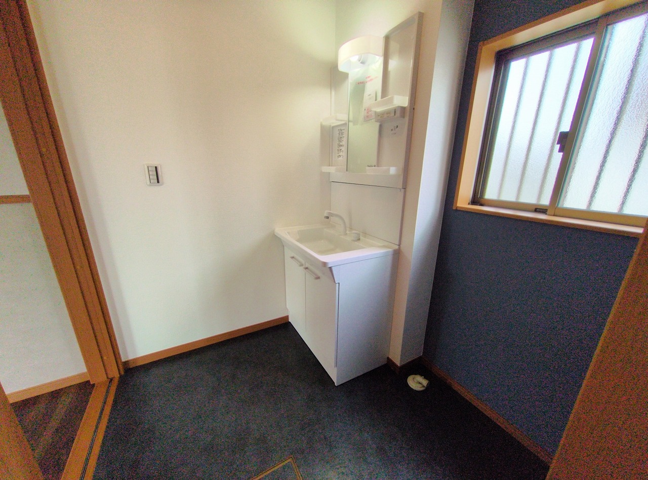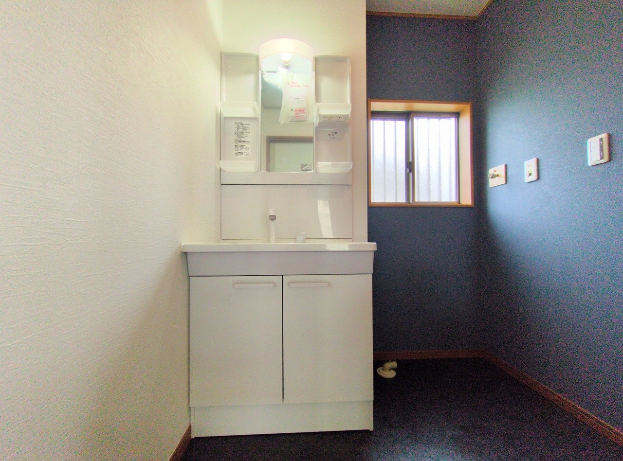 化粧台はやっぱり色が一番。シャワーヘッド付きの収納充実タイプです。