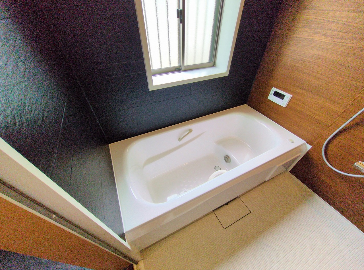 是非、足を伸ばして入って欲しいタイプのユニットバス。半身浴もゆっくり楽しめるベンチバス仕様。疲れの取れ方が違うかも。