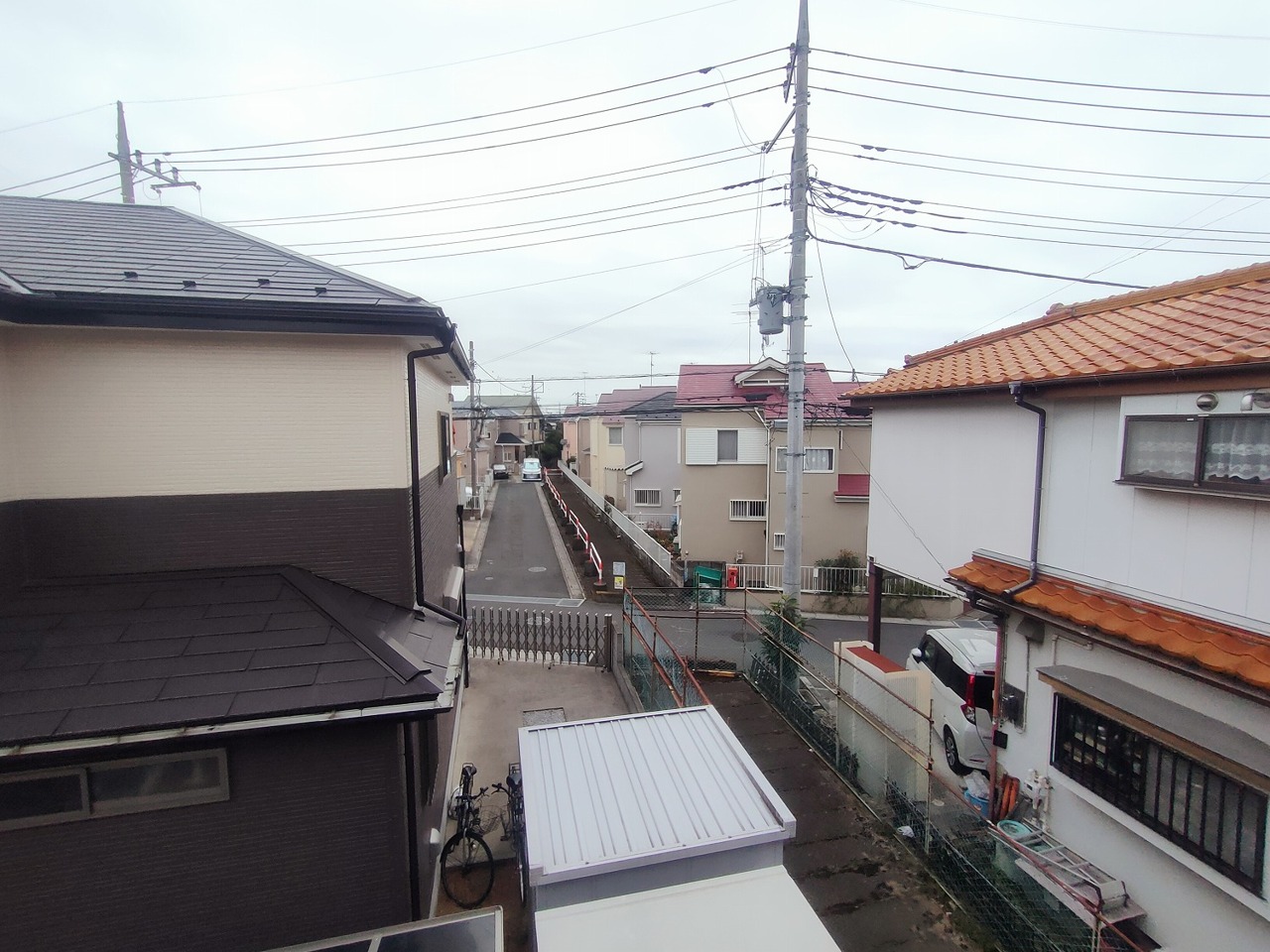住宅街の2階南向きのお部屋、日当たりはご覧のとおり良好です。