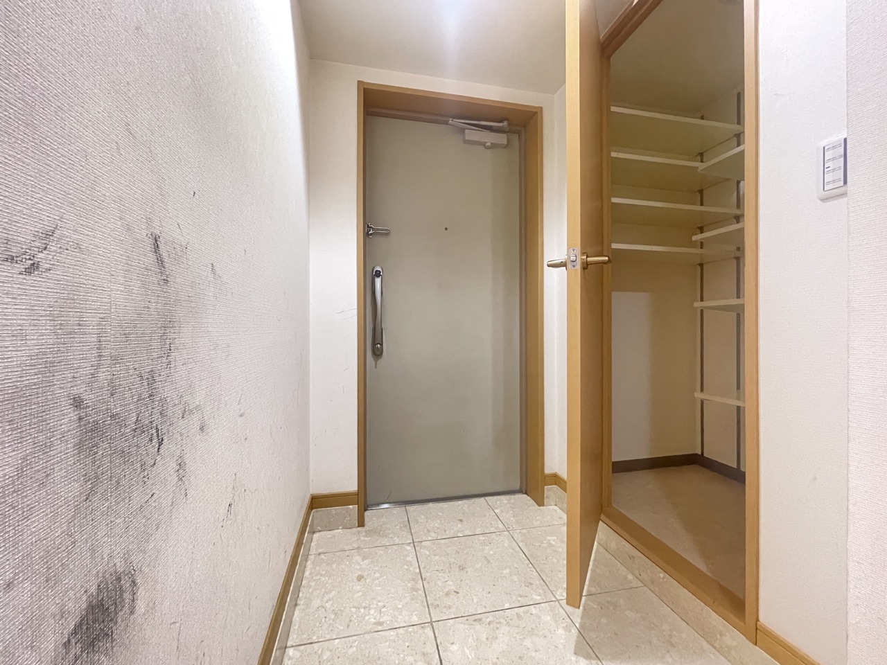 玄関横にシューズインクローク付き、雨具や三輪車を置いても余裕の広さ。