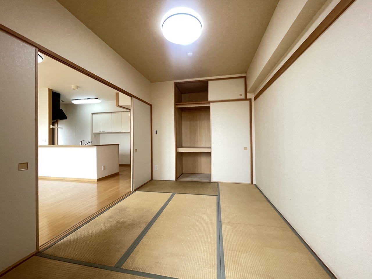リビングと一体のように使える和室。キッチンからもよく見えます。