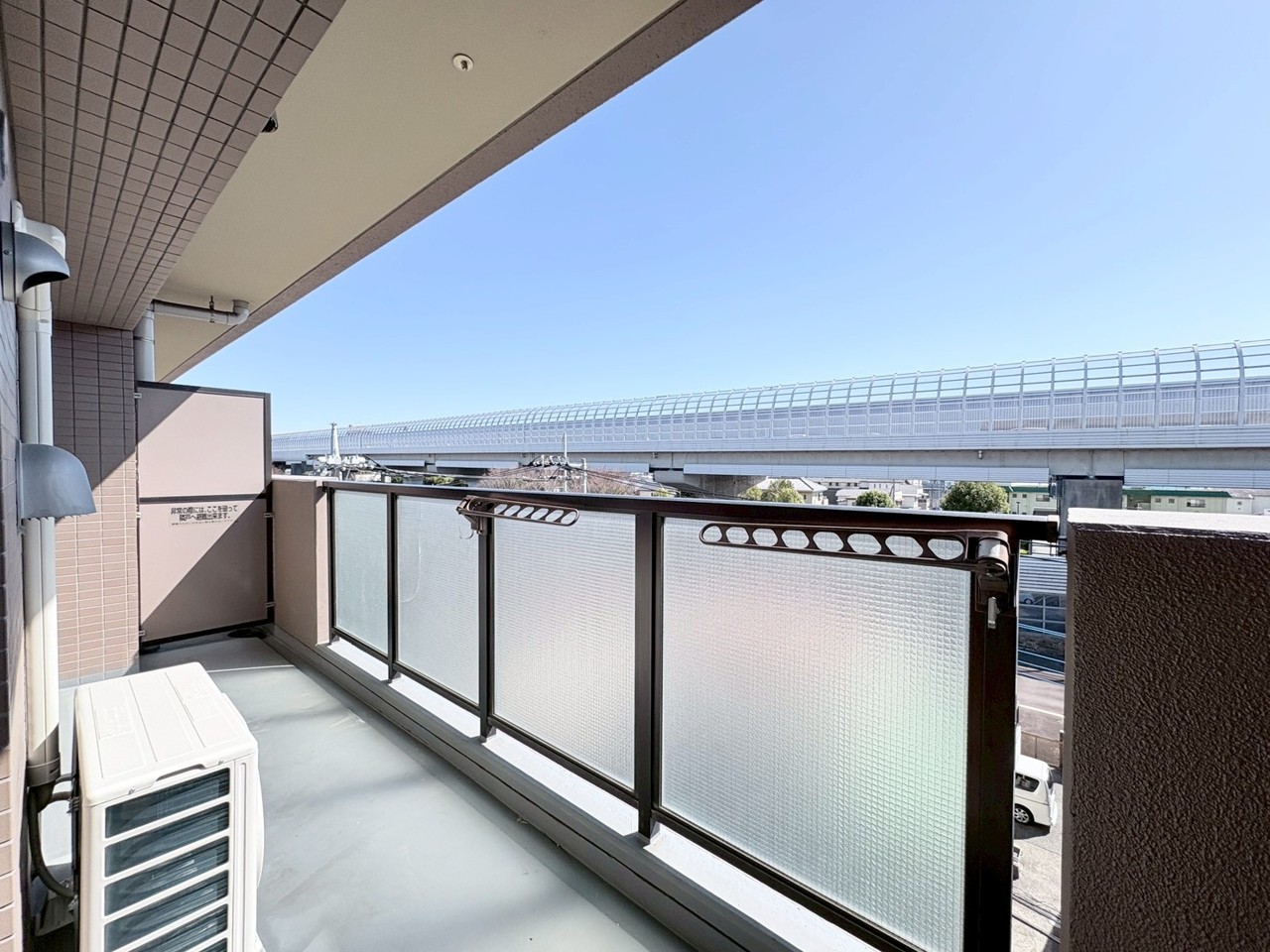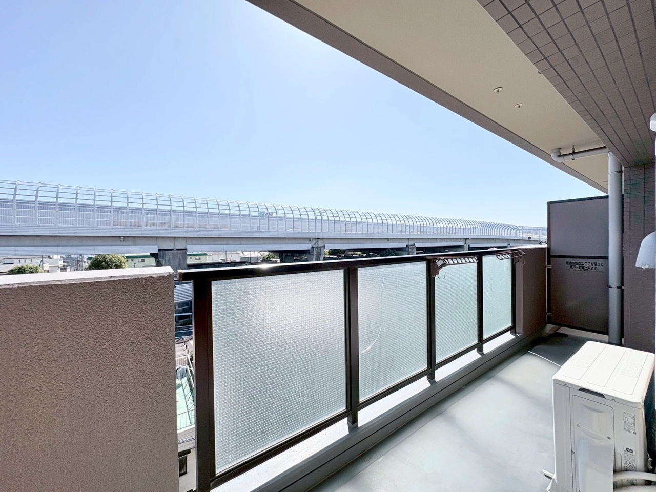 青空の下、開放感あふれる眺望が広がるバルコニー。