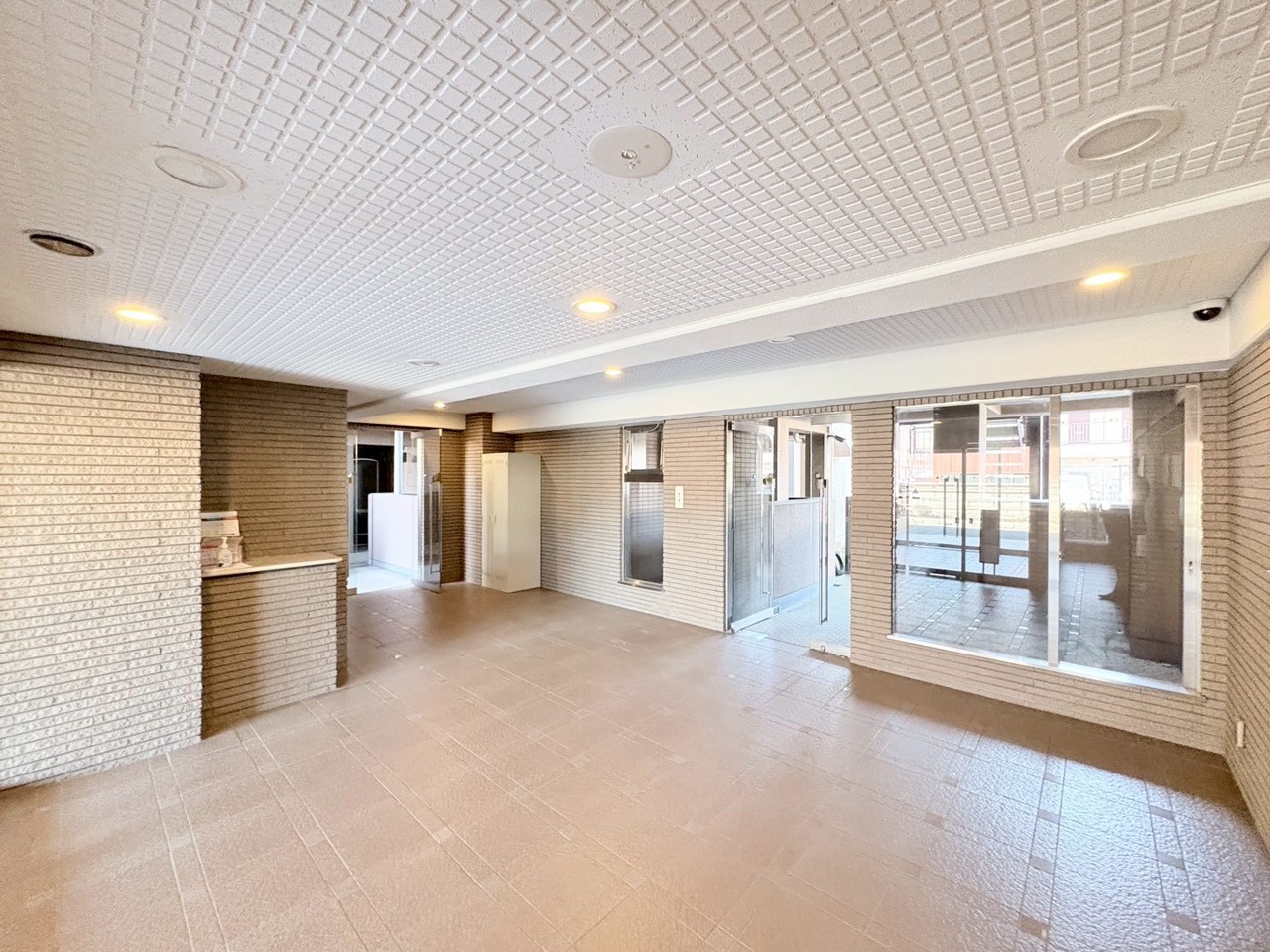 広々とした空間に、落ち着いたトーンのタイルが心地よい印象を与えます。