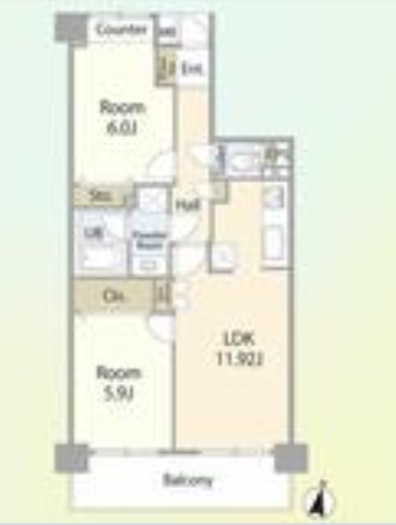 | 間取 | 2LDK (LDK11.92帖、洋室6帖、洋室5.9帖) | ||