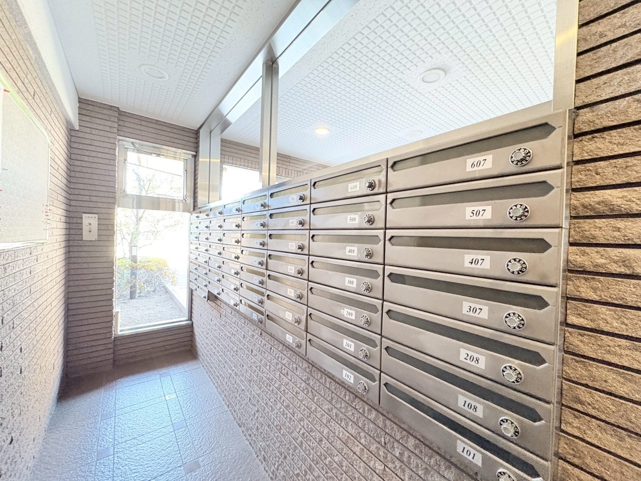 整然と並ぶ郵便受けが、安心感のある暮らしを予感させます