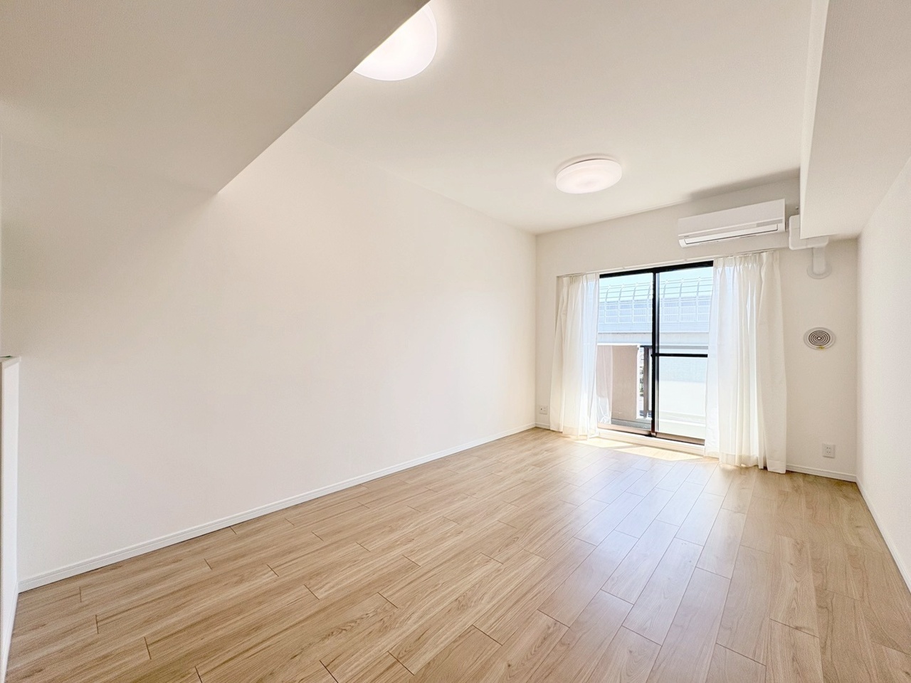 明るい木目調の床が心地よい、広々とした空間。