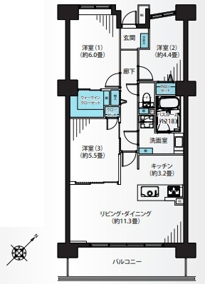 | 間取 | 3LDK (LD11.3帖、K3.2帖、洋室6.0帖、洋室5.5帖、洋室4.4帖) | ||