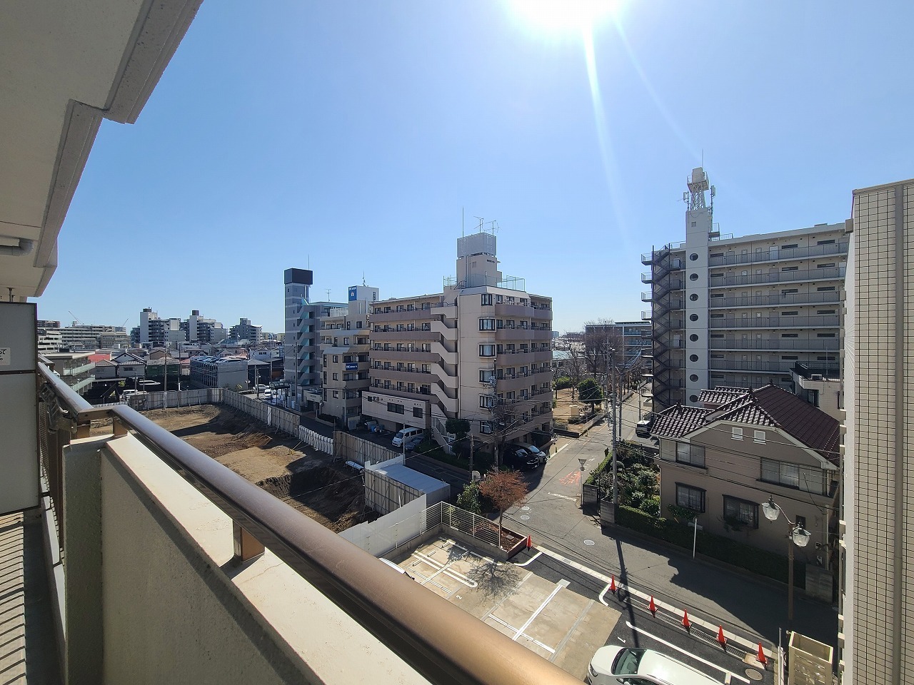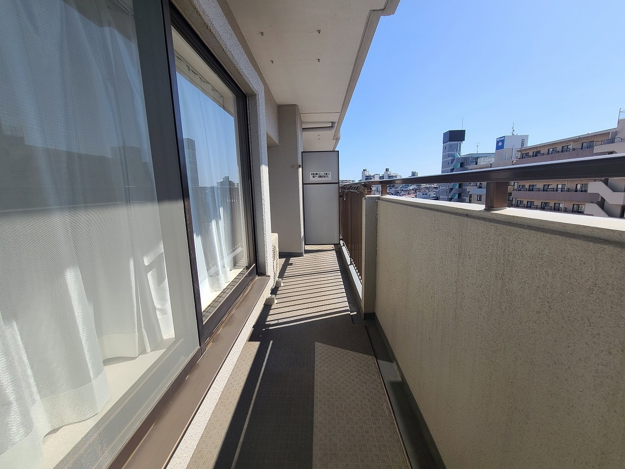 陽ざしが差込む明るいバルコニー。奥行きのあるバルコニーはお洗濯時に助かります。