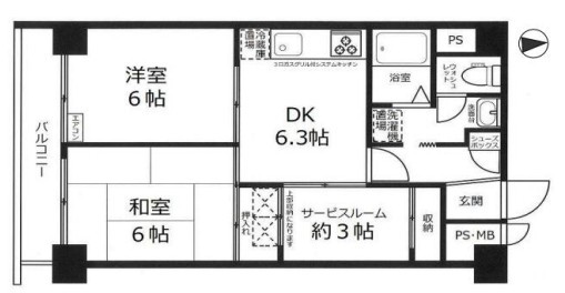 | 間取 | 2DK (DK6.3帖、洋室6帖、和室6帖、S3帖) | ||