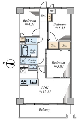 | 間取 | 3LDK (LDK12.2帖、洋室5.5帖、洋室5帖、洋室4.3帖) | ||