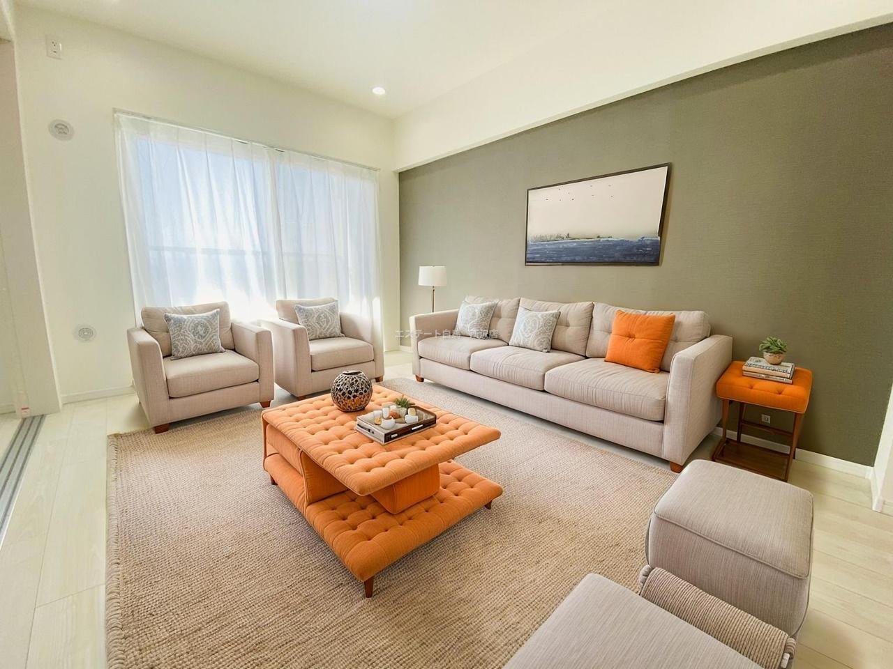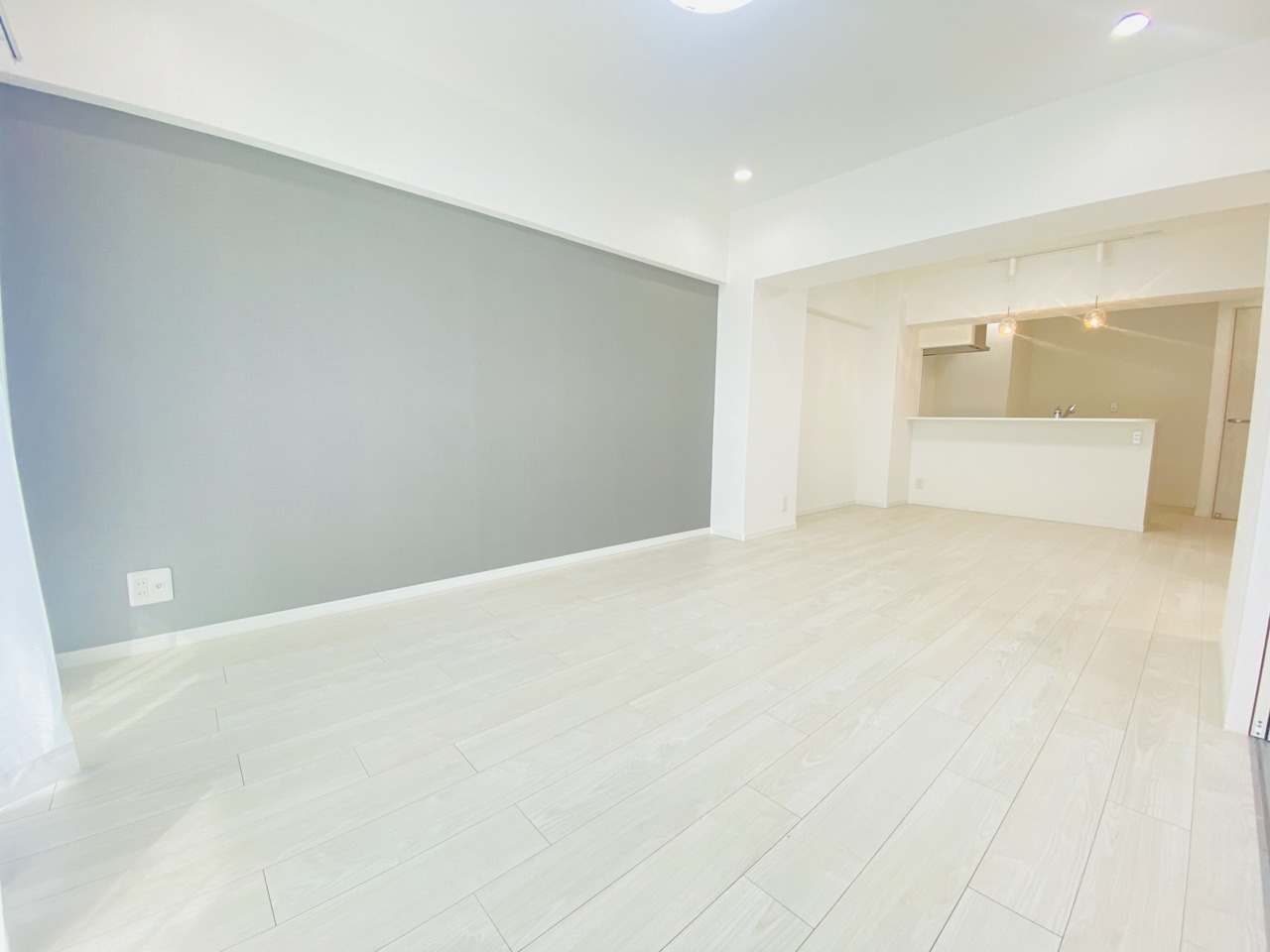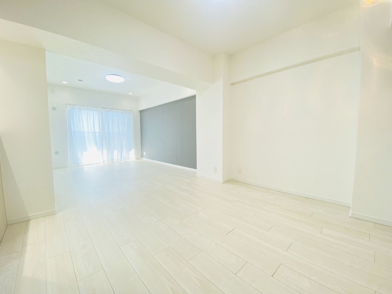 大きな開口部から明るい光が差し込む、日中の室内の明るさがこの部屋の魅力です。