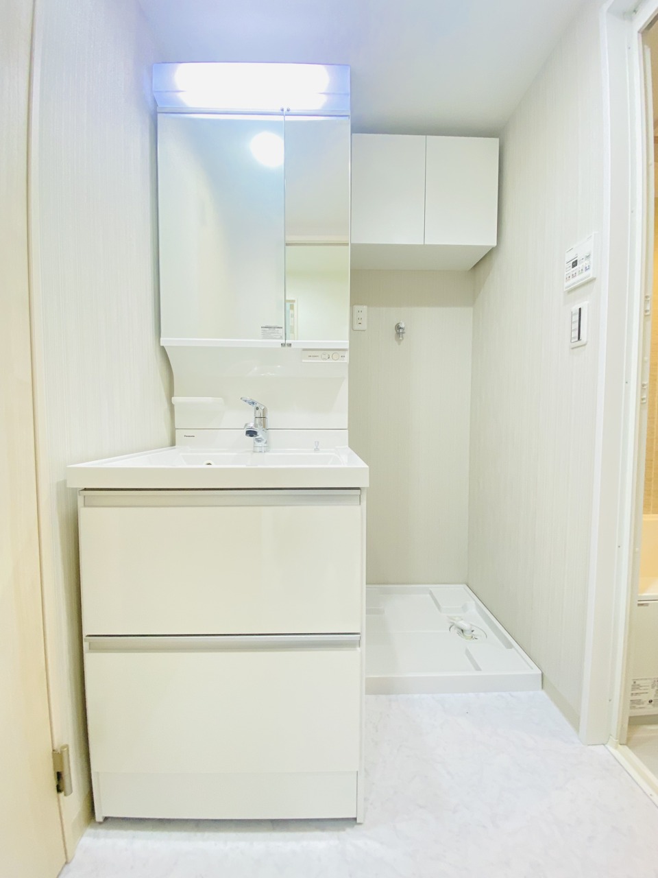 ゆとりの洗面スペースで朝の身支度もスムーズに行えます。