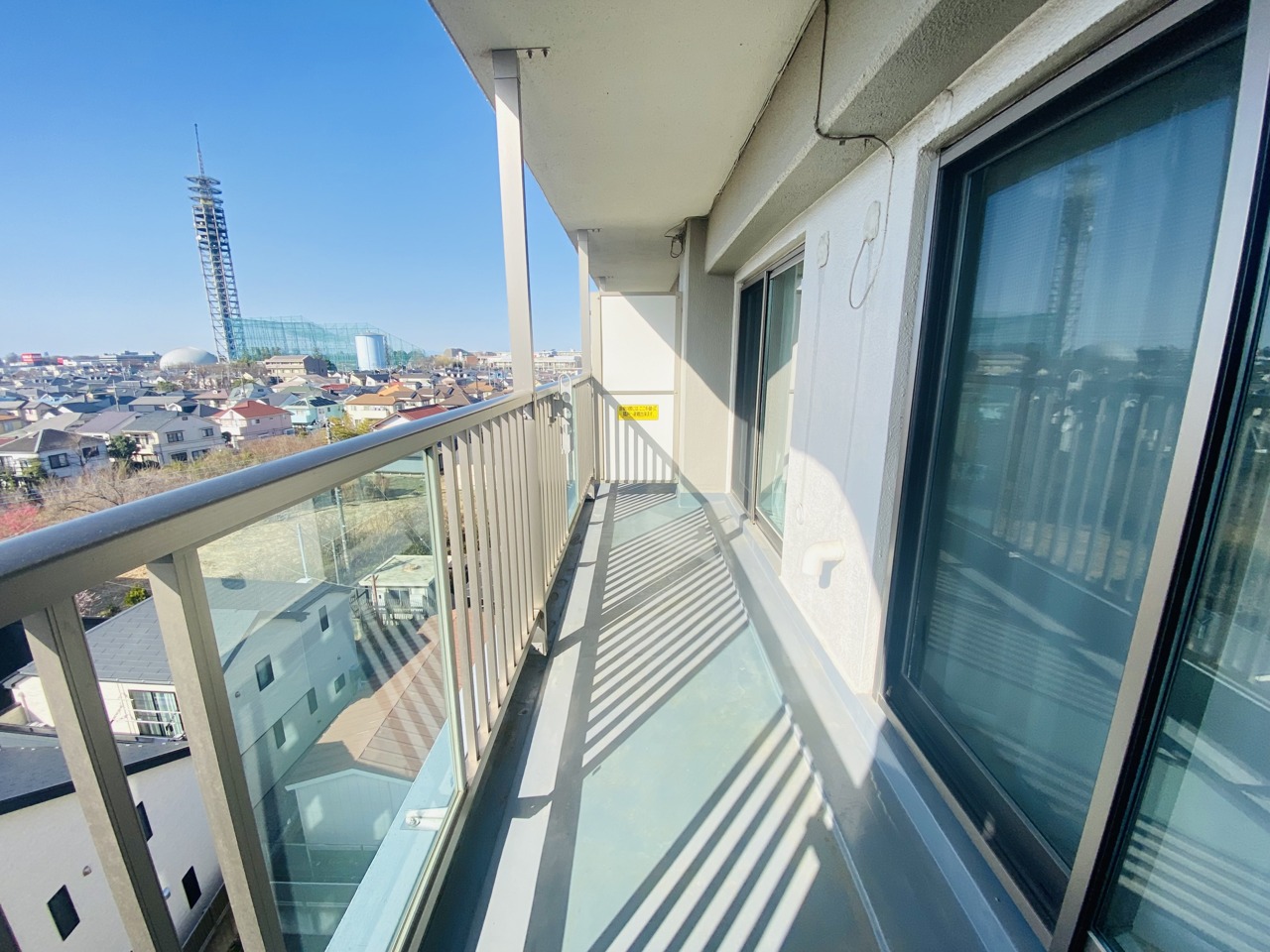 陽ざしが差込む明るいバルコニー。奥行きのあるバルコニーはお洗濯時に助かります。