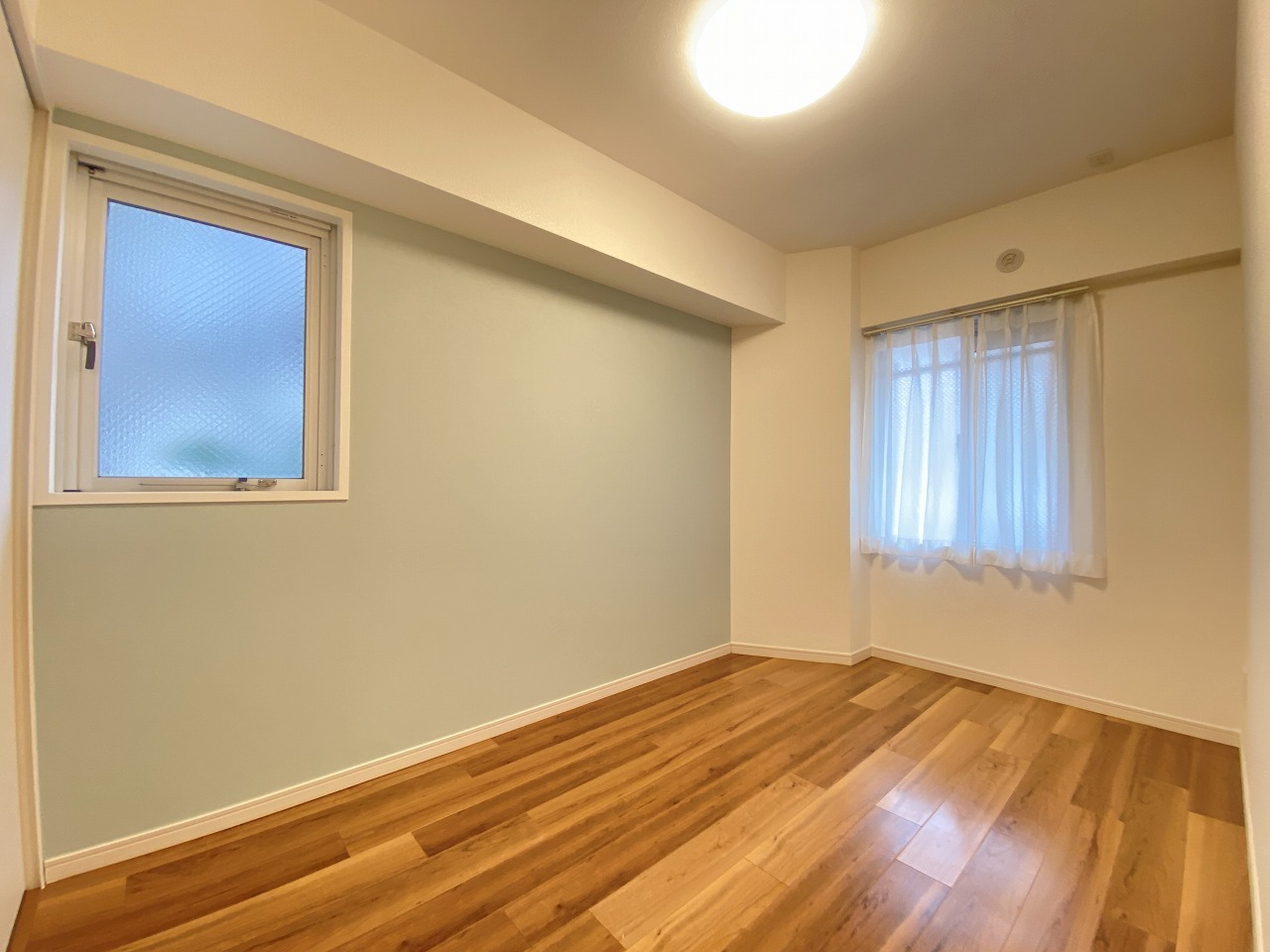 ベースカラーと異なった配色の壁紙を使用。ちょっとお部屋の雰囲気が変わります。